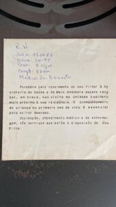 Segundo ele, uma enfermeira que trabalhava no hospital comentou que sua mãe trabalhava no local. Também ouviu comentários que seu pai seria um médico, mas não tem certeza. “Peço que se alguém que trabalhou no hospital e reconhece esta história ou conhece a pessoa que deu a luz nesse período e que tenha entregado seu filho para adoção, por favor forneça algum tipo de informação”, solicita.